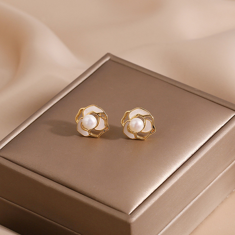 Zircon Silver Ear Stud Gold Pearl Earrings