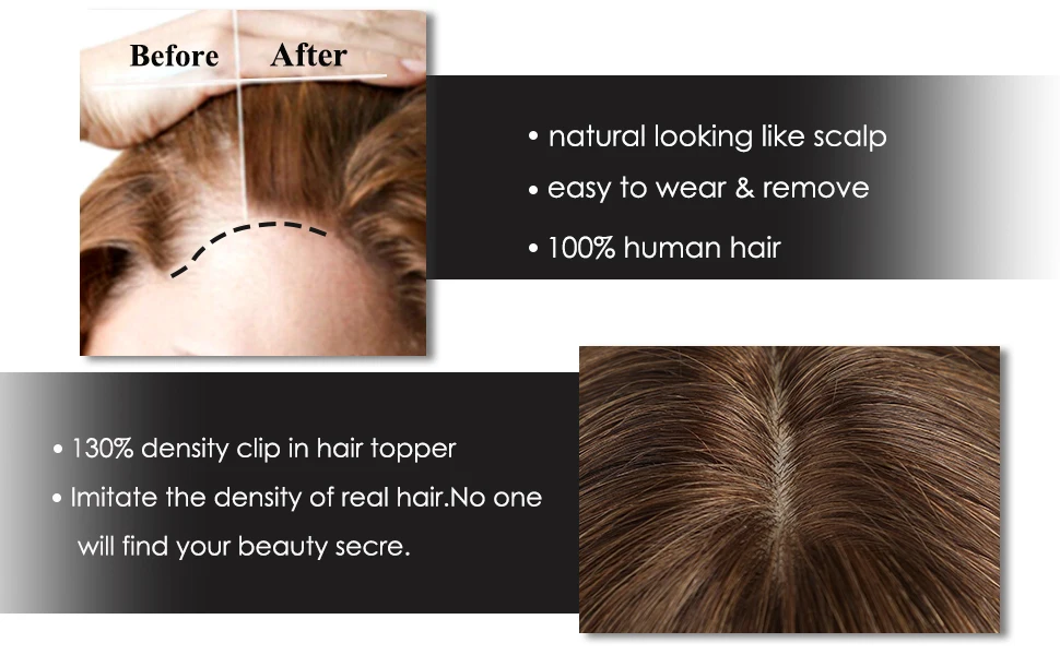 A: The length is determined by your biological hair. When purchasing a topper, choose one that is at least 1-2 inches longer than your natural hair. Measure from the crown to the bottom in the back center of your hair. Some toppers are designed for short to mid-layered hair, filling in the crown.