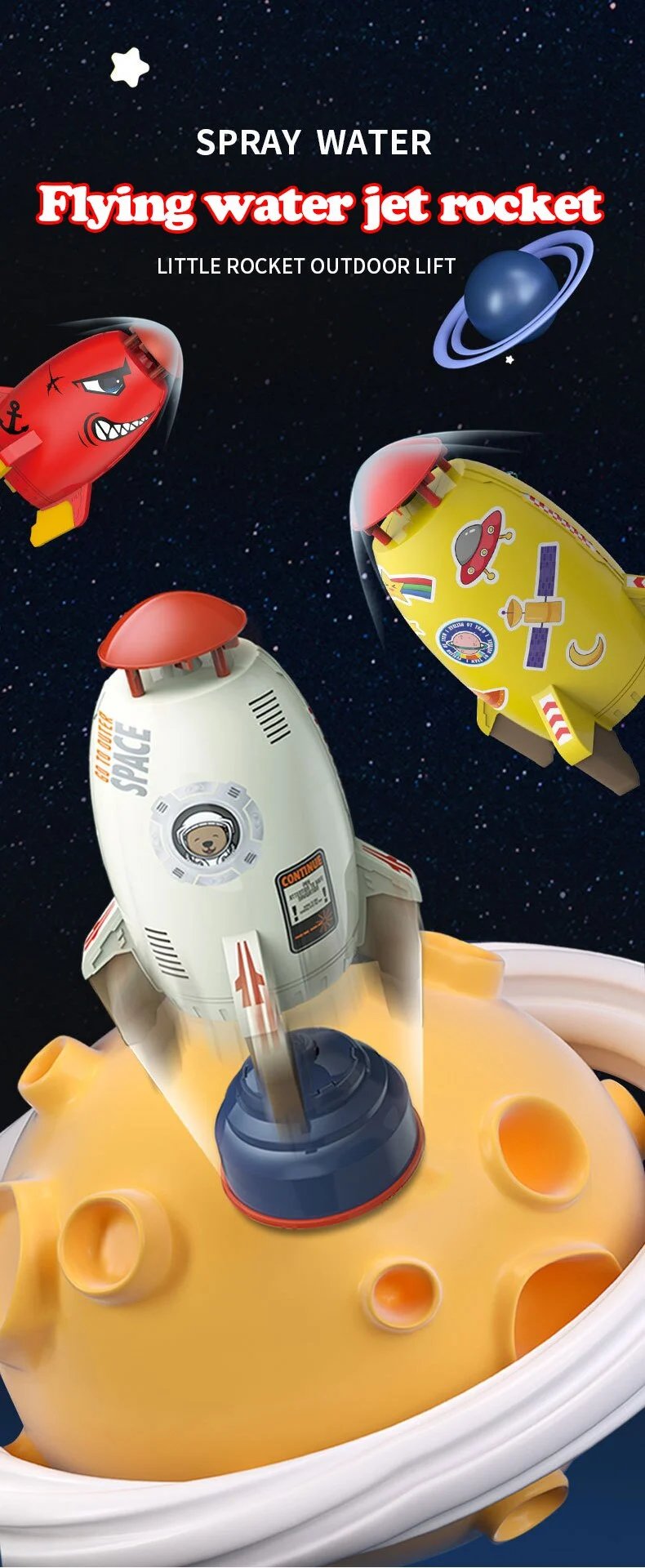 [DIY stickers] When you get the product, you will find that the sticker was not put on first. Please don't worry, we will put the stickers in the product packaging, and you can decorate the stickers by yourself, and paste them according to your favorite position to make the rocket toy more beautiful.Make a difference with others' rocket toys.