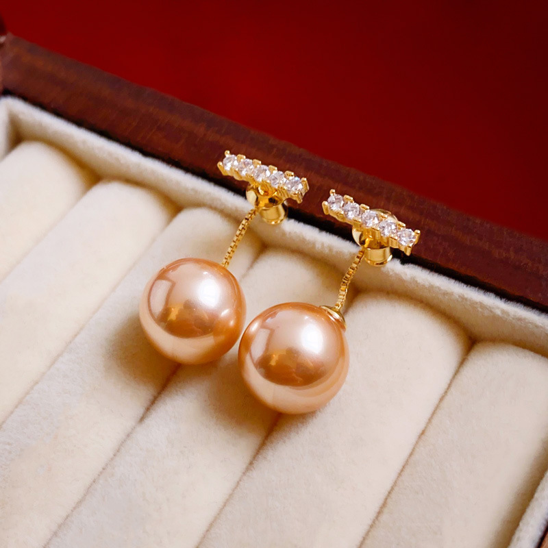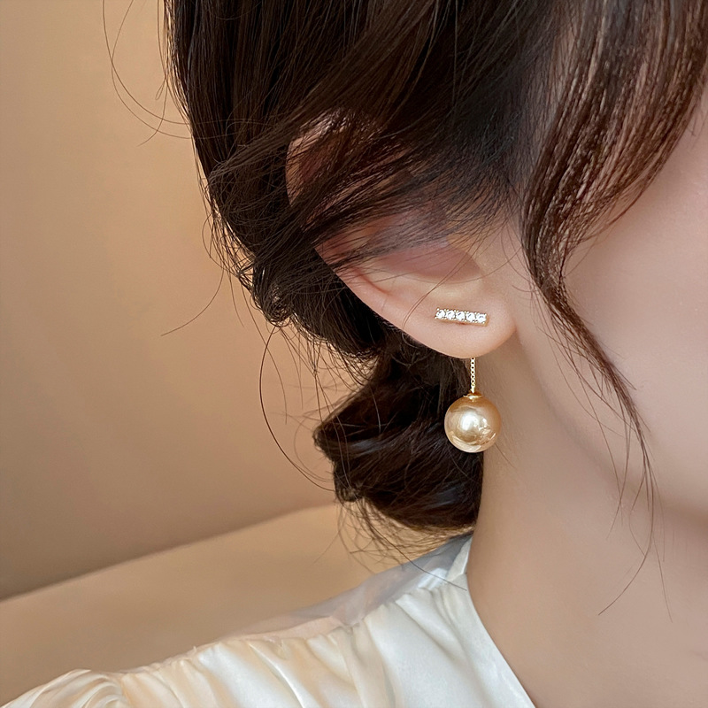 Straight zircon pearl earrings